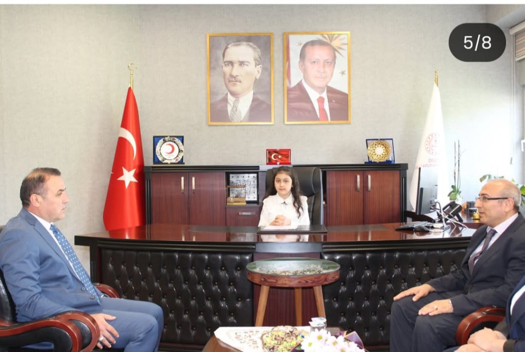 23 Nisan Ulusal Egemenlik ve Çocuk Bayramı kutlamaları kapsamında İl Milli Eğitim Müdürümüz Emrullah AYDIN, temsili olarak koltuğunu okulumuz öğrencisi Buğlem Eylül DEMİRTAŞ'a devretti.Türkiye Büyük Millet Meclisinin açılışı ve 23 Nisan Ulusal Egemenlik ve Çocuk Bayramının 105. yıl dönümü kutlamaları kapsamında düzenlenen temsili görev değişimi, İl Milli Eğitim Müdürümüzün Makamında gerçekleşti.